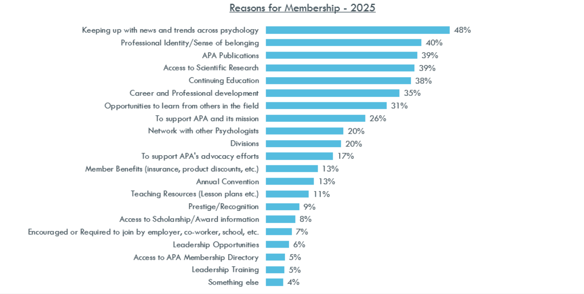 - The top reasons for APA membership include news and trends across psychology, professional identity, APA publications, access to scientific research, and continuing education.